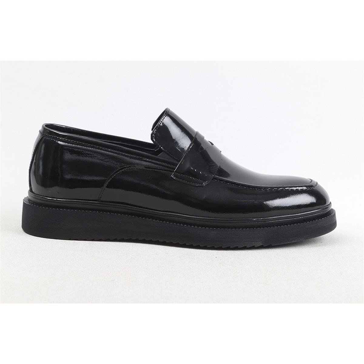 Ulus 088 Kuşakli Saraçli Rugan Siyah Poli Casual Ayakkabi